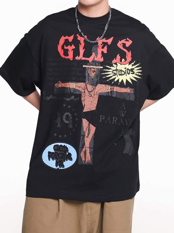 Camiseta extragrande de manga corta con estampado cruzado para hombre