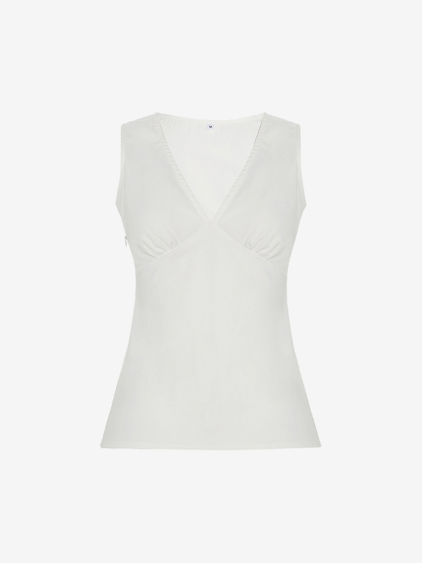 Camiseta sin mangas con escote en V y pecho al descubierto de estilo sencillo