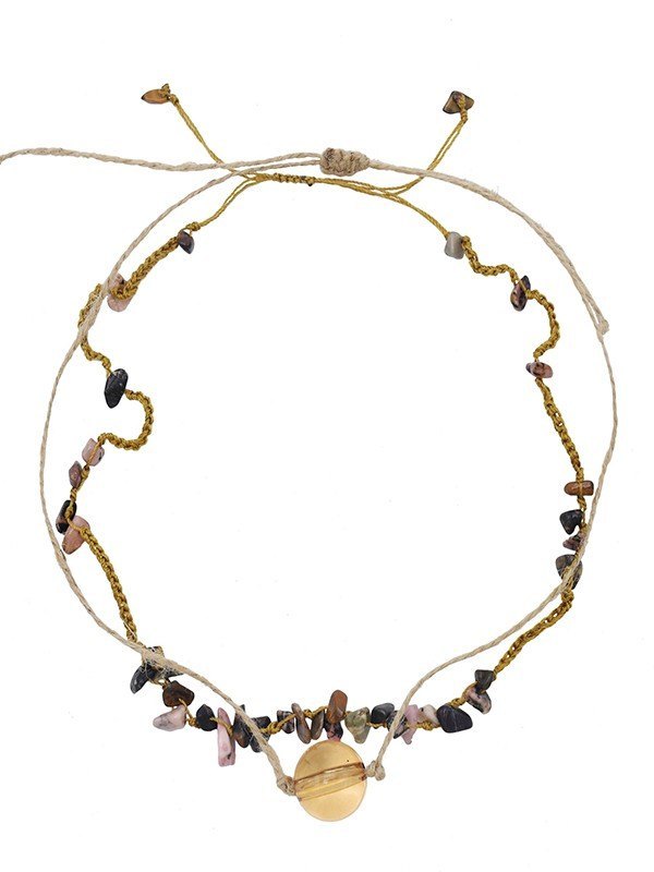 Collar de cuerda trenzada con colgante de jade ahuecado
