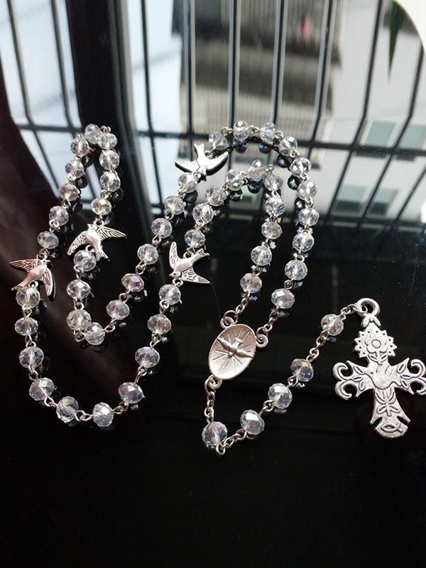 Collar de cuentas largas con colgante de cruz de paloma