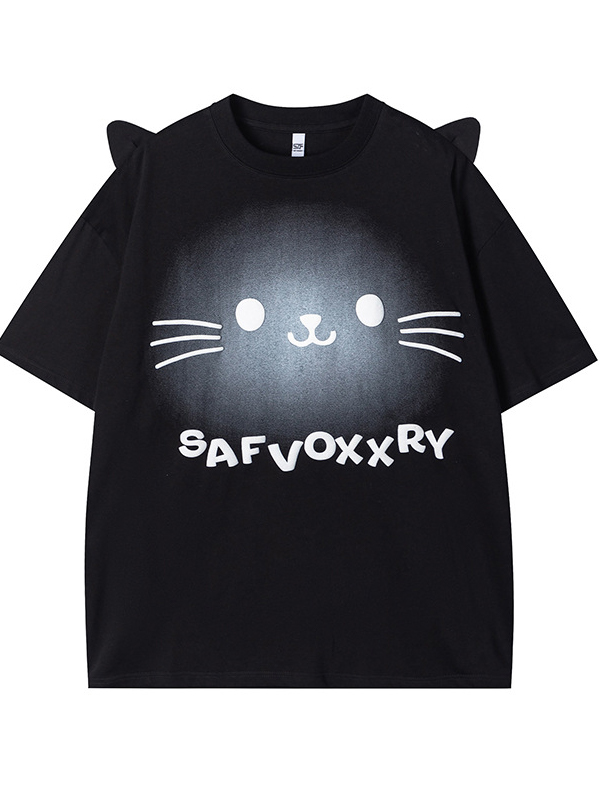 Camiseta de manga corta de gran tamaño con estampado de gato