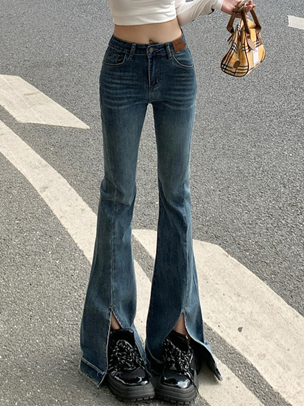 Jeans acampanados con aberturas adelgazantes y ligeramente acampanados
